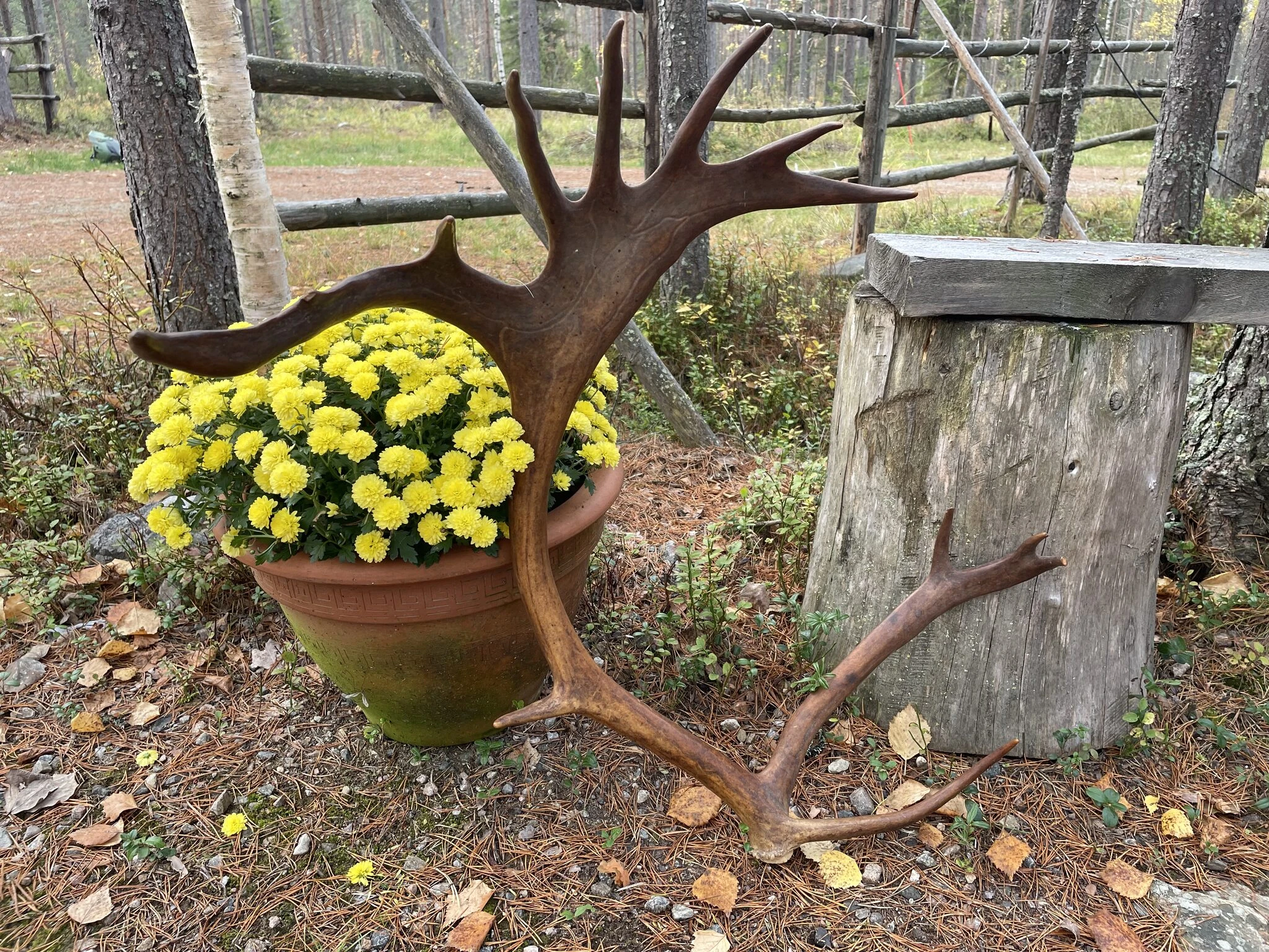 Porotilalta löydät kotiin viemiseksi erilaisia poronsarvia. Porot pudottavat sarvensa joka vuosi ja uudet kasvavat tilalle.